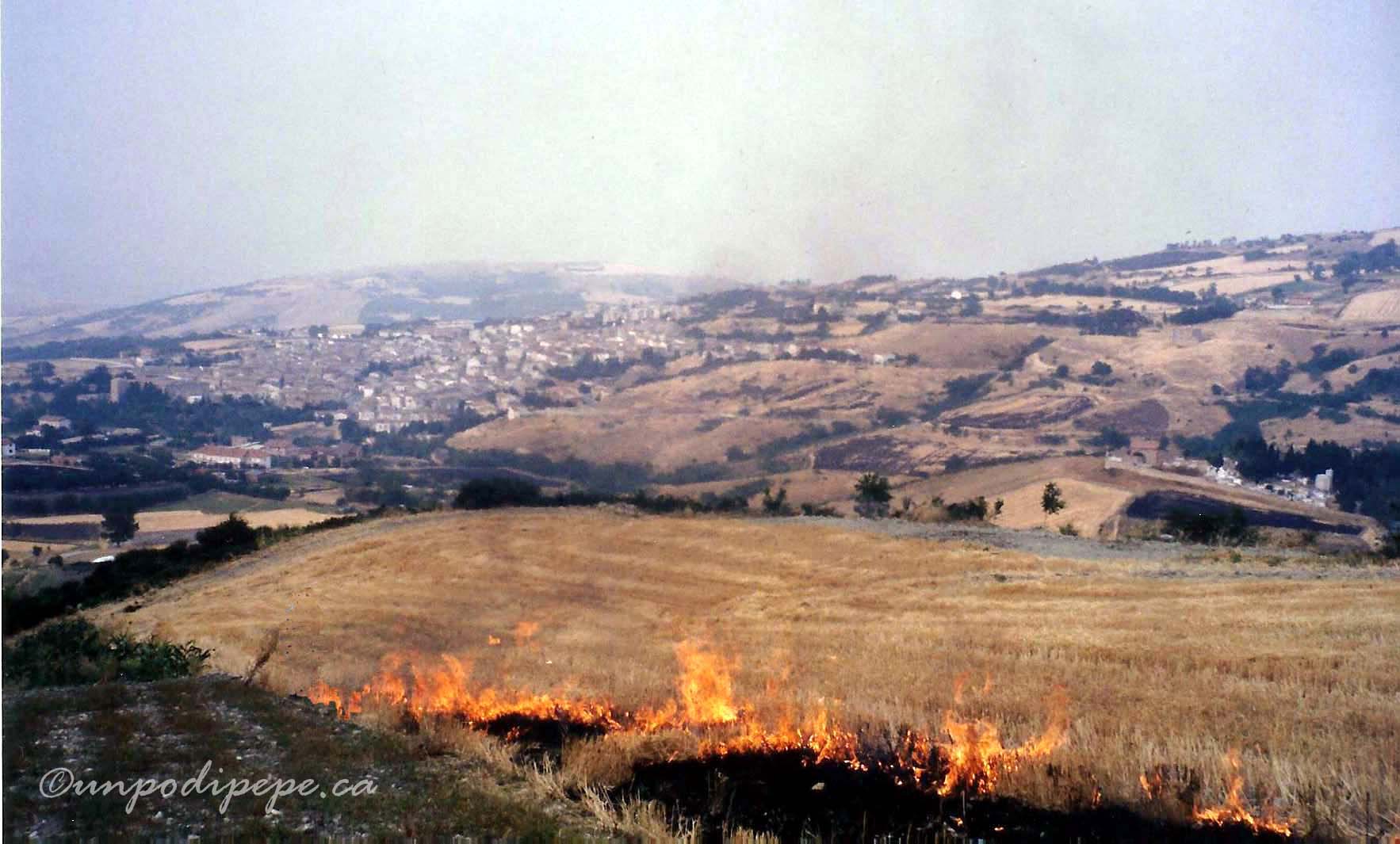 Grano arso literally means burnt wheat. Flour made with it is ‘farina di grano arso’ and has a history going back many centuries as part of the gastronomic tradition of ‘cucina povera’ in Northern Puglia. Farina di grano arso was traditionally made from the bits of wheat left in the field after the harvest. The stubble, called stoppie (STOHP•pyeh) or la ristoccia (rees•TOCH•chya) that was left in the fields was burned, then plowed back into the soil. This was done as a quick and cheap way of clearing the fields. It was also thought to aerate and fertilize the soil and kill weeds and pests.
