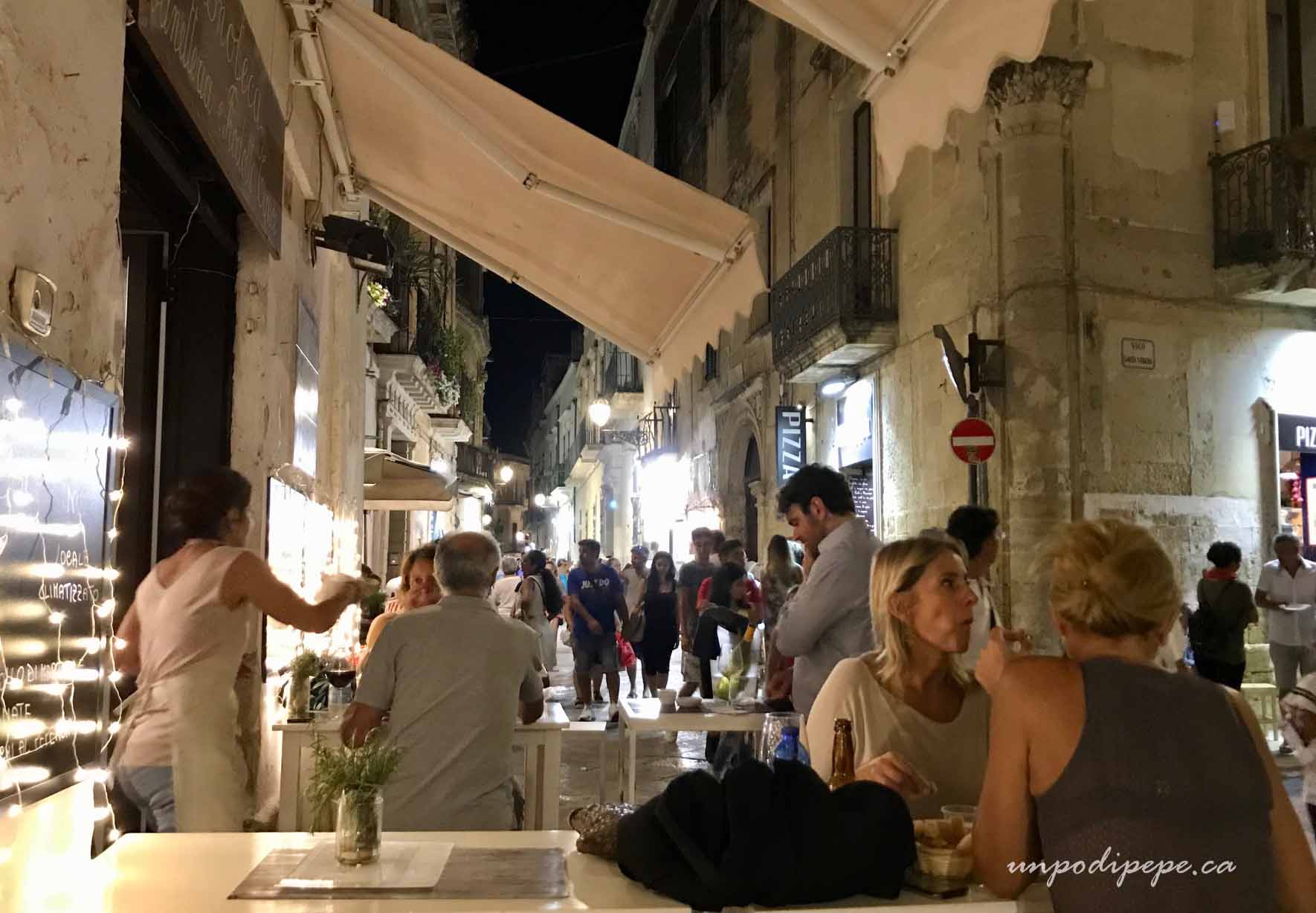 After dark the streets are lined with outdoor seating for vino and aperitivo, and everyone is out for passeggiata.