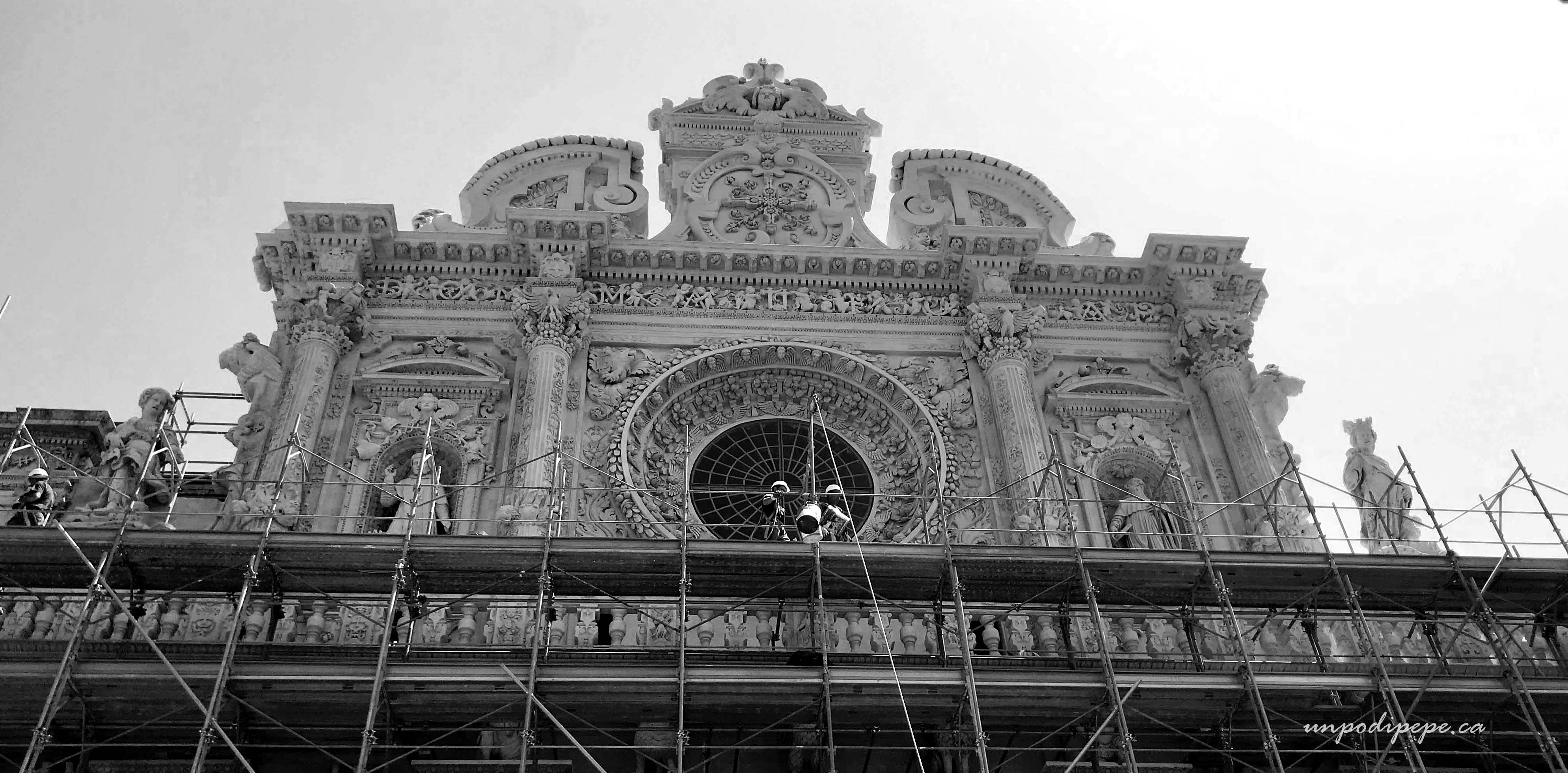 Lecce is best known for its dramatic Baroque architecture and ornamentation, which even has its own name-Barocco Leccese. The style was around from the mid 1500’s to the early 1700’s, so even among buildings constructed at different times there is continuity of style.