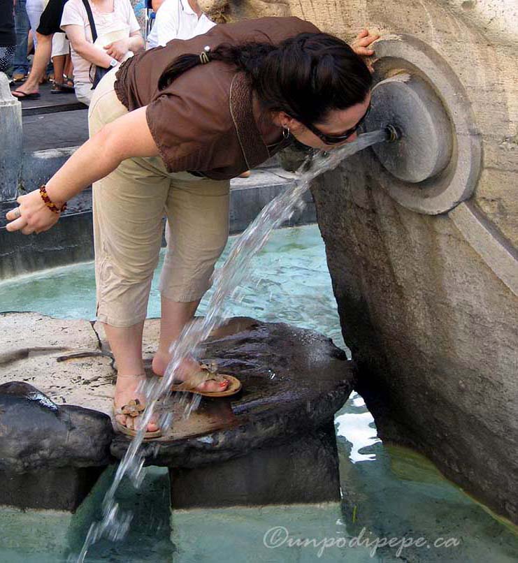 Photo credits:  Drinking from La Barcaccia by Shannon Milar, Photo with bas reliefs by my sorella Lucia.