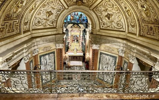 I had the day before the conference free and met local expert Lucia Hannau from Turinepi for a morning walking tour.  We started in Il Quadrilatero, the oldest part of city, dating back to Roman times.  Piazza della Consolata is home to Caffè Al Bicerin since 1763. They make it in other historic bars, but this is the home of the original Bicerin- with the accompanying plate of local cookies. Bicerin is the iconic drink of Torino, with 3 layers, chocolate, caffè and frothed milk-no stirring!  Stay tuned for a future post! Santuario della Consolata, is across the piazza.  The Baroque exterior looks more like a neoclassical temple, the interior ornate and colourful, gilded and decorated with marble of different colours.