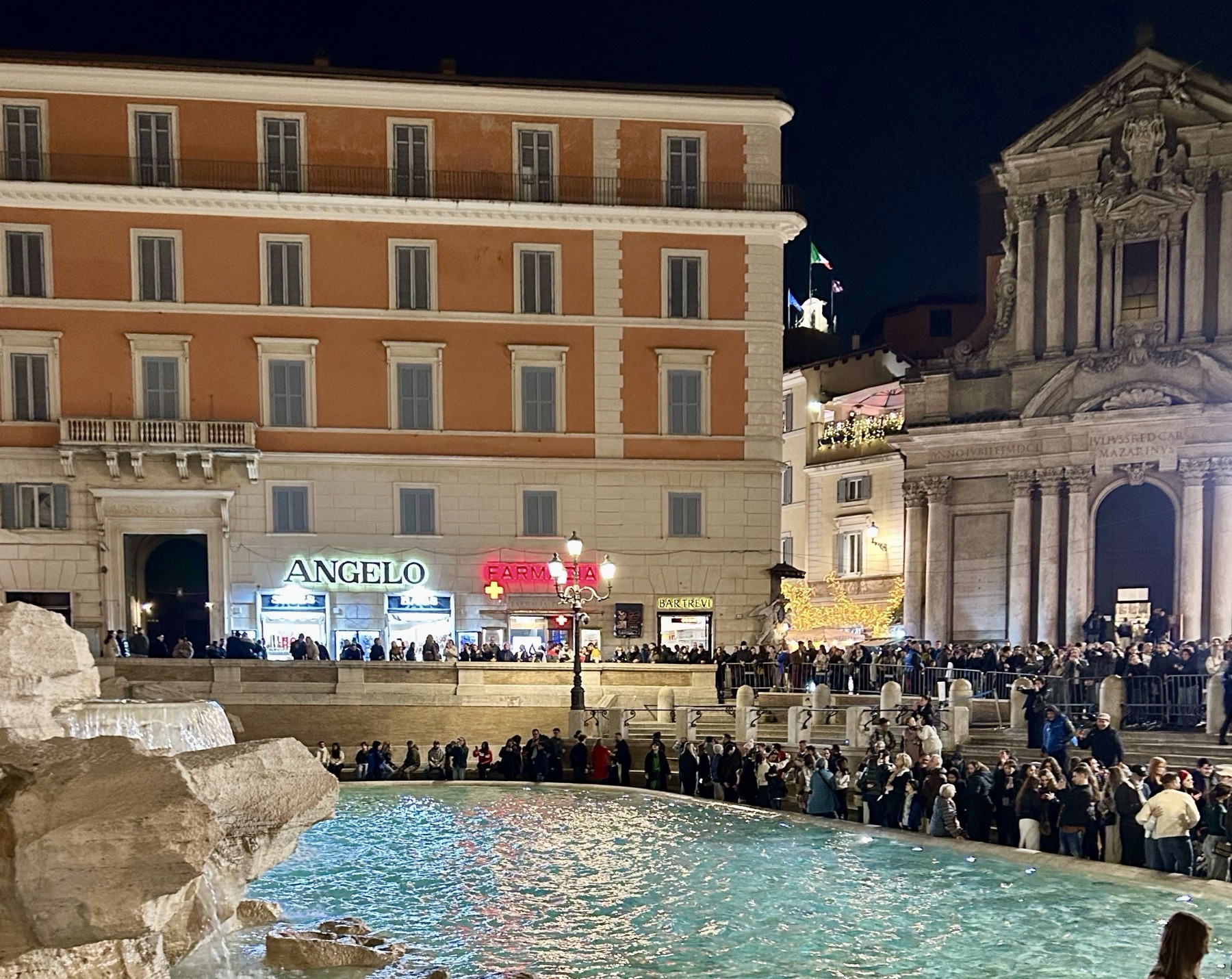 All of those coins in the water can’t be hygienic either.  Approximately €3,500 per day is collected nightly and given to the charity Caritas. The money funds a program providing supermercato cards Roma’s needy.   There are regular attempts to steal the coins from the basin, which of course is illegal.  The water has been vandalized many times, painted red and most recently dyed black with charcoal by climate eco anarchists.