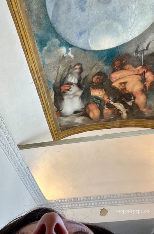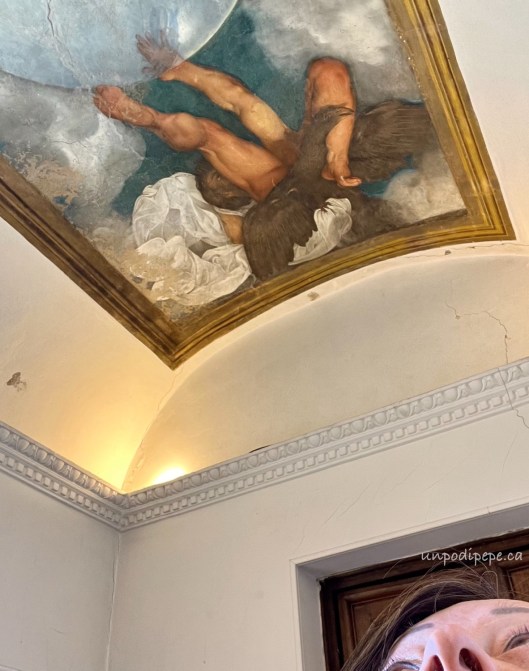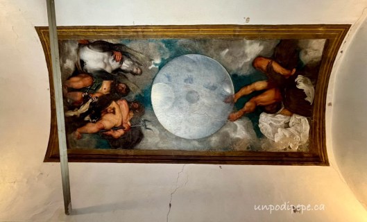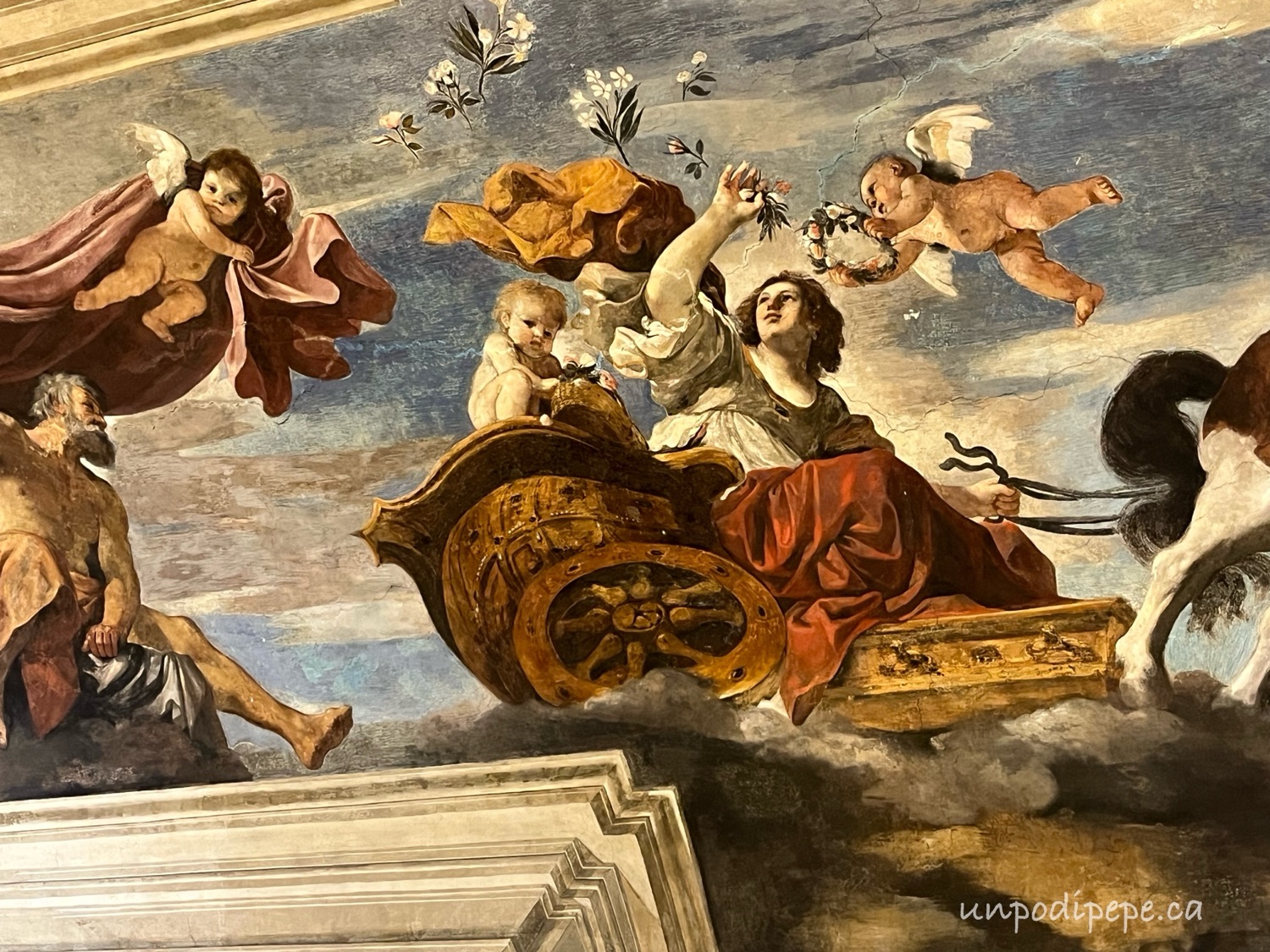 This is why the villa is also referred to as Casino dell’Aurora or Villa Aurora. Guercino had help with the illusionist architectural details by the notorious Agostino Tassi. Read more about him in the post Artemisia Gentileschi.