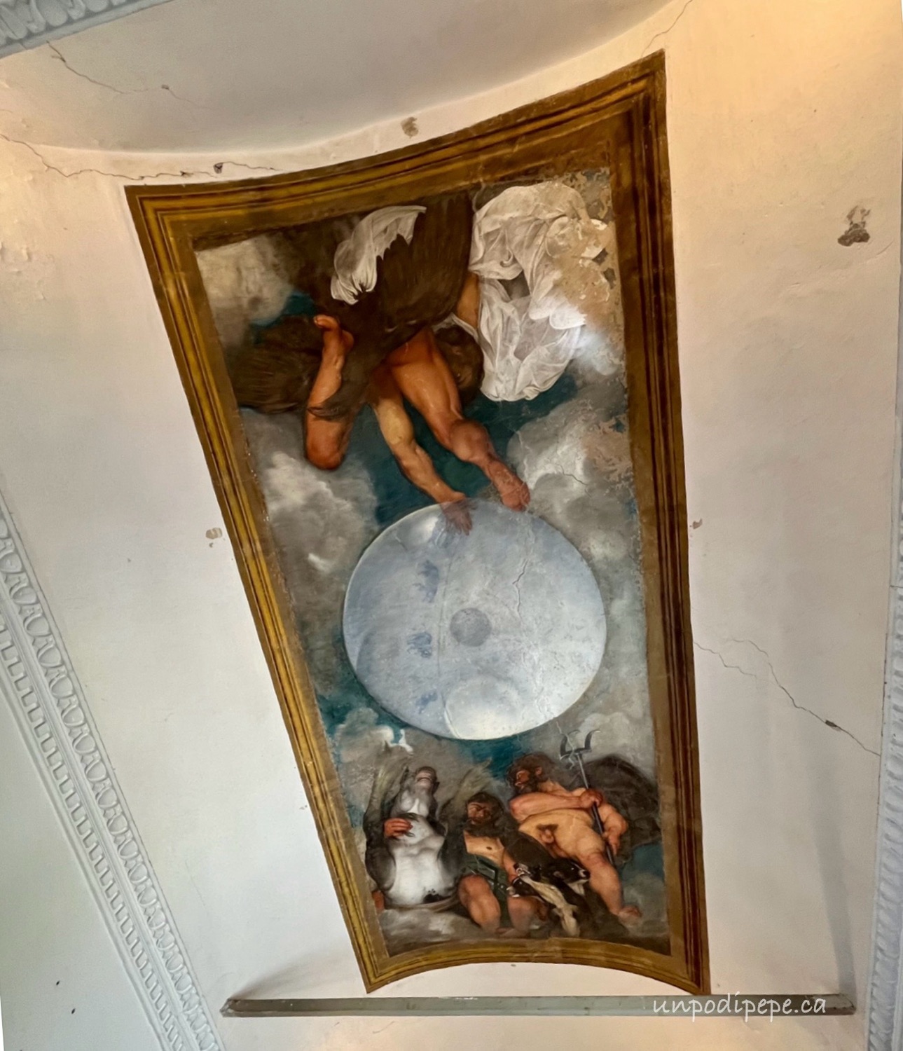 The Villa is the only remaining part of a large suburban retreat, built by Cardinal Francesco del Monte in the 16 th Century. The cardinal was an early patron of Caravaggio and he had an interest in alchemy*. He commissioned 25 year old Caravaggio to paint the ceiling of his small alchemy lab in 1597.