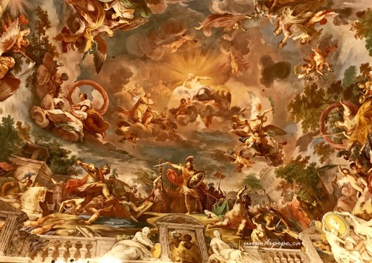 They make it in other historic bars, but this is the home of the original Bicerin- with the accompanying plate of local cookies. Bicerin is the iconic drink of Torino, with 3 layers, chocolate, caffè and frothed milk-no stirring! Stay tuned for a future post! Santuario della Consolata, is across the piazza. The Baroque exterior looks more like a neoclassical temple, the interior ornate and colourful, gilded and decorated with marble of different colours.