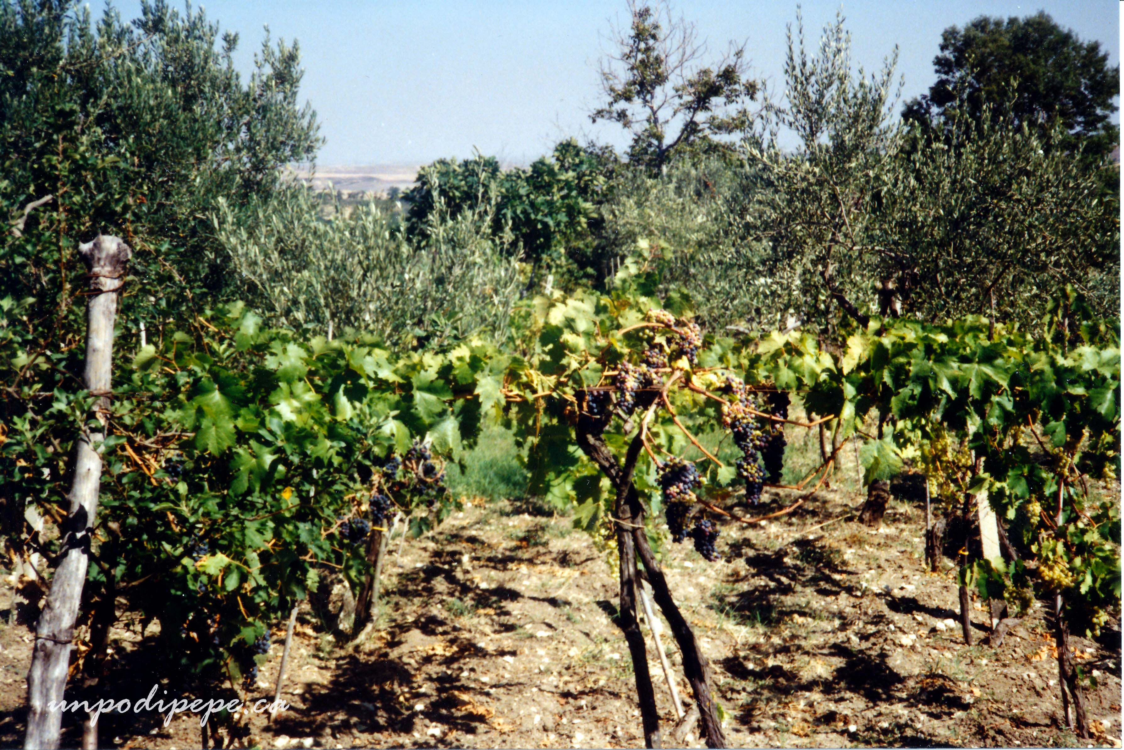 When ready, the fermented grapes are transferred to the old wooden torchio, for pressing. Since there are no preservatives added, our vino is stored in large, bell-shaped, wicker-covered glass damigiane, and siphoned into bottles only as needed. The wine needs to be tramutato a few times. This involves transferring it from one damigiana to another, to remove sediment.