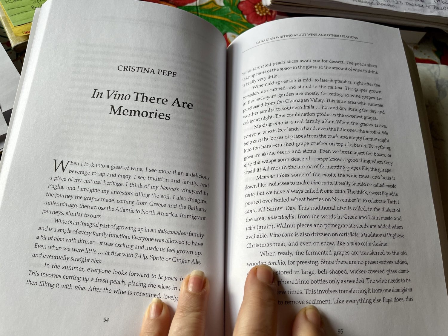 Pubblicato in ‘A Literary Harvest: Canadian Writing about Wine and Other Libations. editors Licia Canton, Giulia De Gasperi & Decio Cusmano. Longbridge Books, 2025, p 94-96.