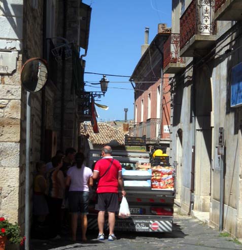 Castagne (cas·TAH·nyeh). Chestnut trees have been growing in Italia since at least 2000 BC, the oldest ones being in Calabria. Pushcarts selling castagne calde in paper cones will be found all over the country. Everyone I know has an old pan at home with holes punched out the bottom to use for roasting castagne. Don’t you have one? Castagne can also be boiled with bay leaves or made into soup or chestnut honey, miele di castagne. Chestnut flour is used to make pasta which is eaten with pesto in Liguria, and Castagnaccio, a chestnut flour cake with olive oil, raisins, pine nuts, rosemary and orange rind. This cake is originally Tuscan, but can be found in other areas too. I tasted some in Roma, but it did not last long enough for a photo. Below is a poster for a Sagra della Castagna this weekend in Potenza, Basilicata.