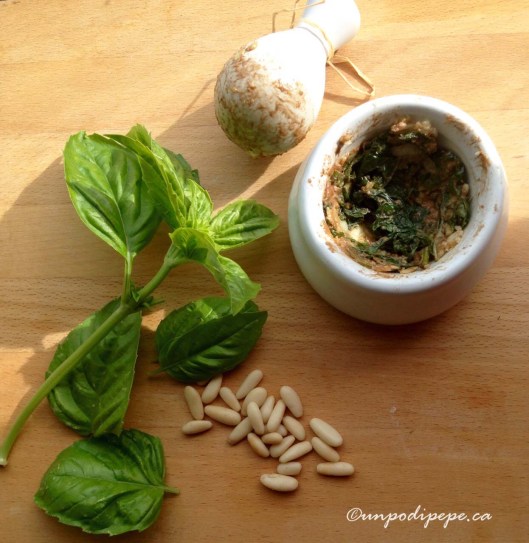Once the pomodori were canned, the rest of the basilico was used for making Pesto Genovese. Now I need to make some Corzetti to serve the pesto with. I can pour myself a glass of white wine and pretend I am in the Cinque Terre.