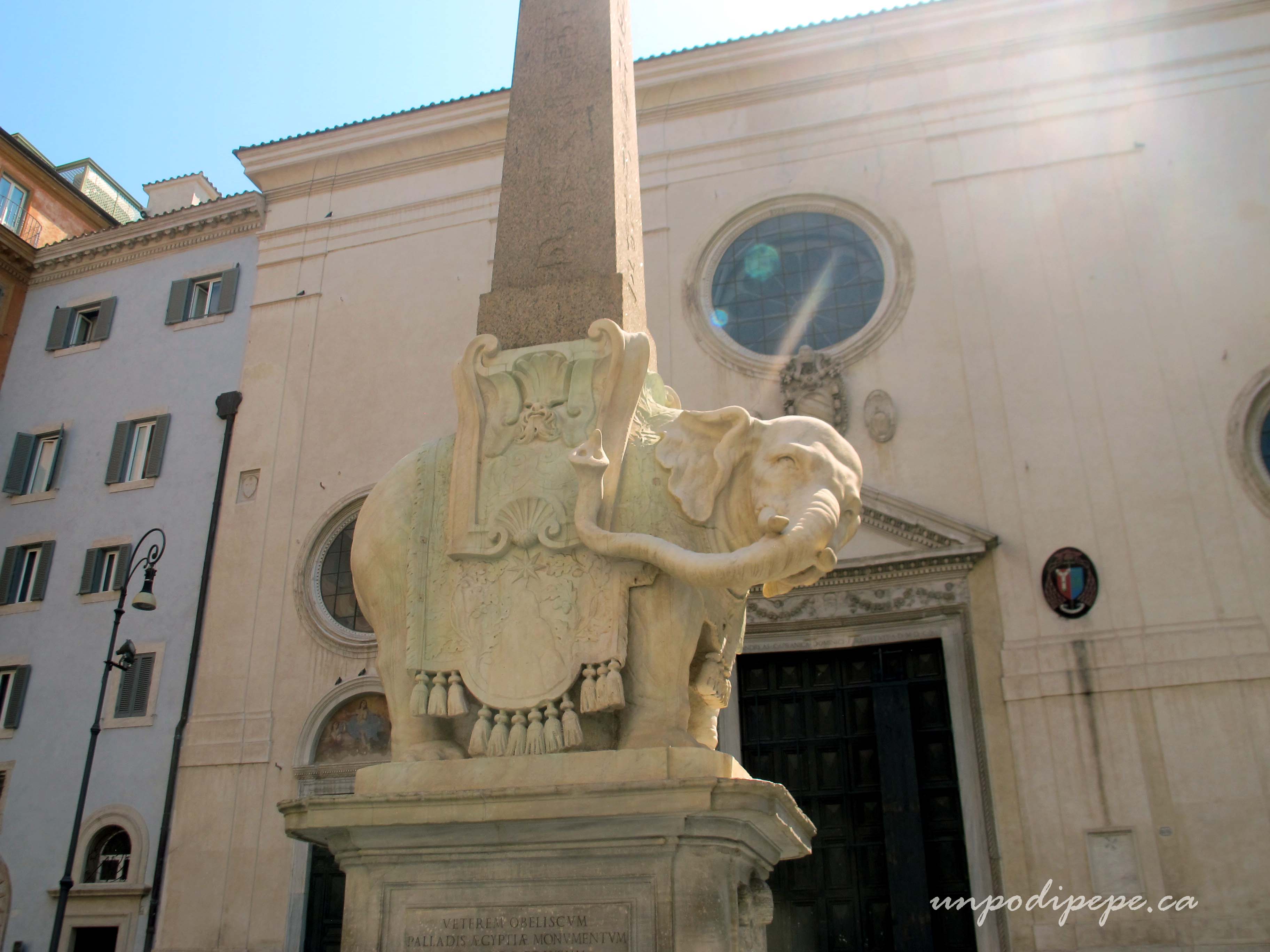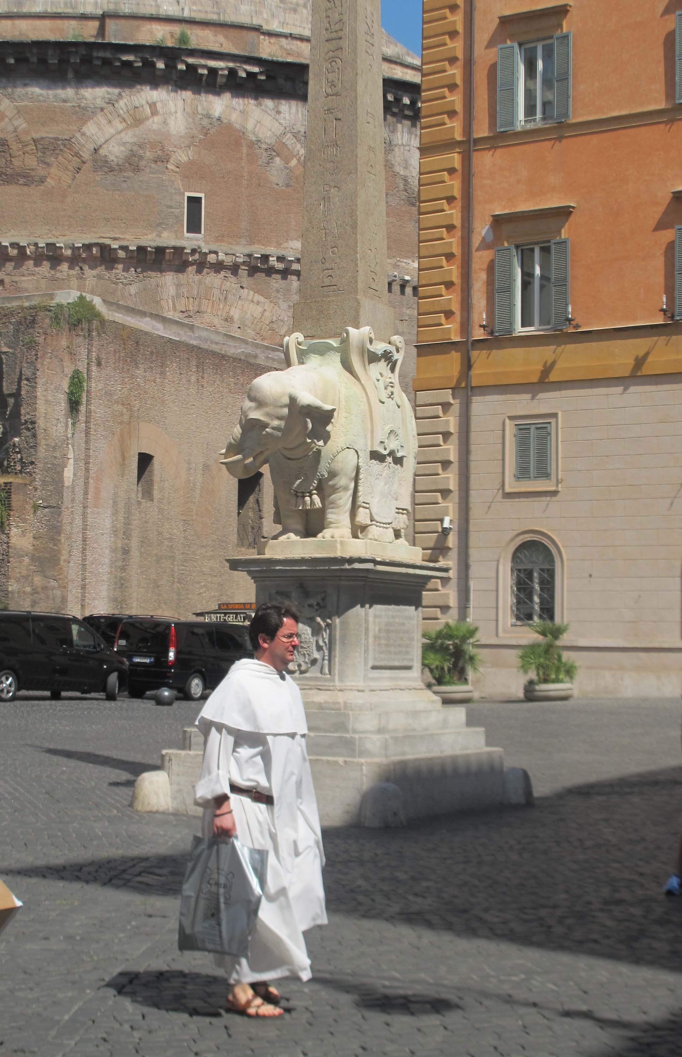 Last week, one of my favourite monuments in Roma was vandalized. Gianlorenzo Bernini’s Elefantino had one of his zanne (tusks) broken off by unidentified vandals. I think I called them ‘stronzi maleducati’ in my instagram post. I was being polite. A Spanish couple found the broken piece and reported it to the authorities. The ‘stone surgeons’ have reattached the zanna (ZAHN·nah) and reinforced it with wooden splints. A nice €2000 bit of plastic surgery. The process is shown in this